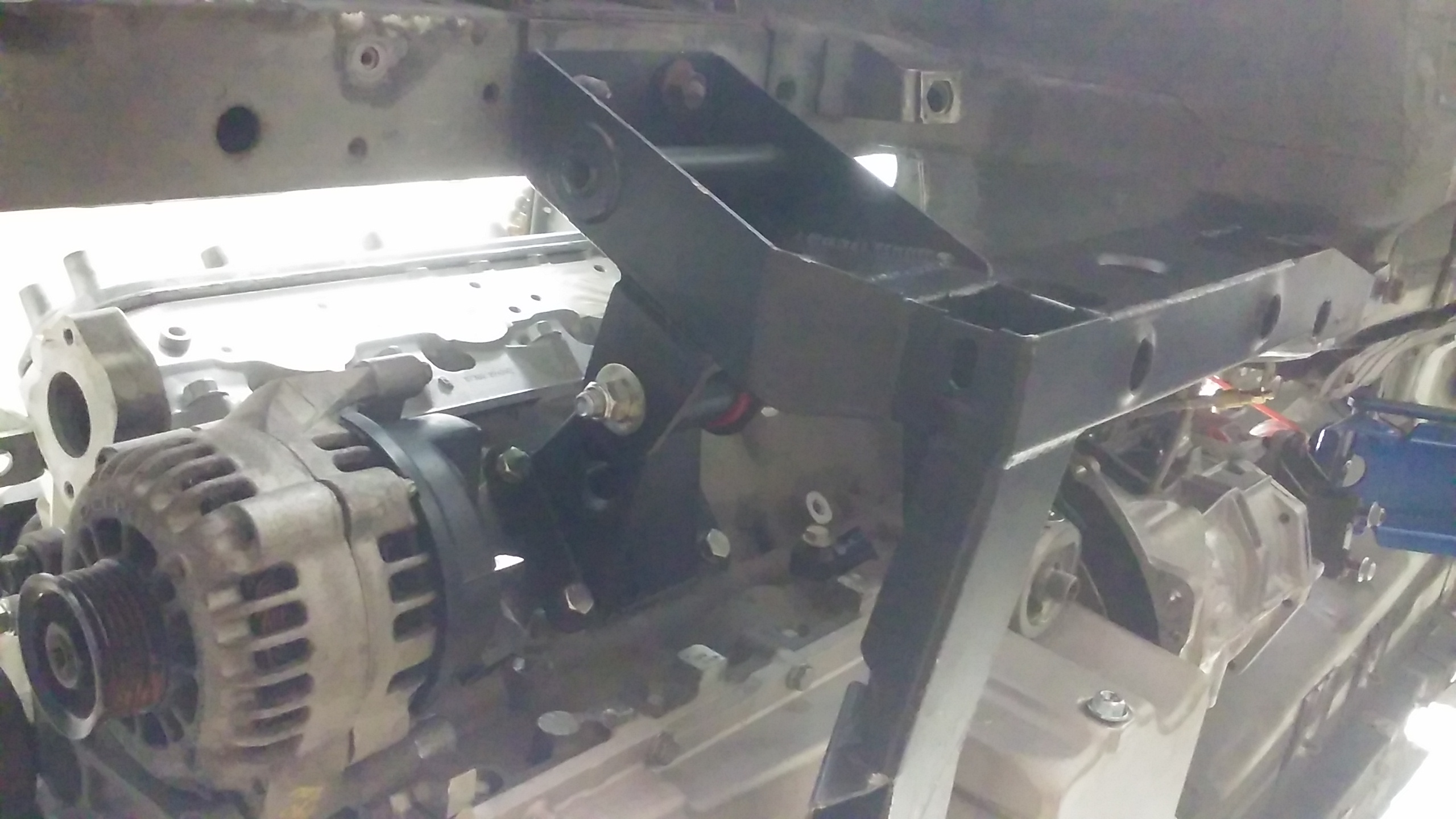 So i decided to try to run v8r headers with the monster subframe but had a little interferance in a couple of spots. I made up these plates to move the motor back an inch to fix the clearance. 3/4\" would have been better. I had to clearance to top of the tunnel with the additional setback. On the plus side, since i'm running f-body accessories, the extra inch up front means i wont have to comprimise on my fans/radiator placement.