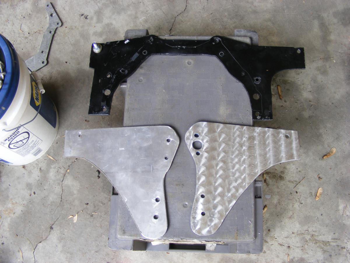 All the motor mount plates & frame brackets were fabbed. I'm running front mounts, mid mounts, and a 2x3 tranny cross member, hoping it will stiffen up the back halved chassis.