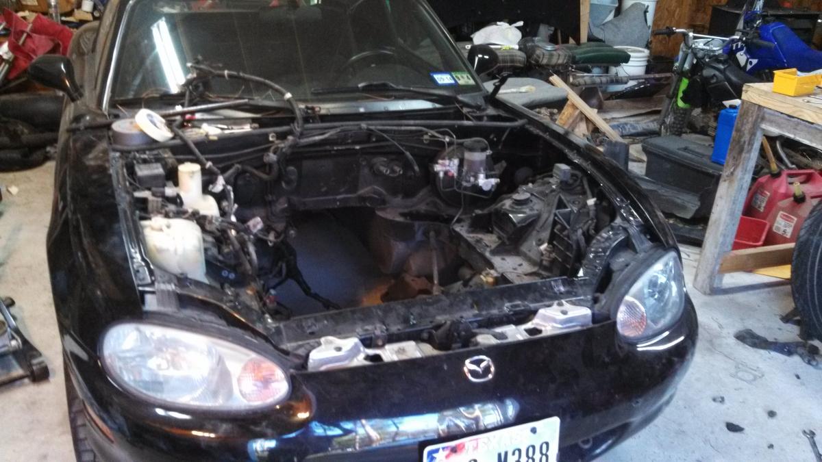 The car cost me $2000. It is a 99 model. It had an automatic tranny in it and the motor was not working. The guy I bought if from said he was sure it needed a motor because it was running fine and made a sound "like the wind" and quit. I took the motor and tranny out and found the motor only had about a pint of motor oil in it. The interior was in very good condition and the body didn't have any rust. If you are looking for a NB miata, I suggest a 2001 or newer because they have cooler headlights and front bumper covers (which I have upgraded to) They also have useable cup holders. Also look for one with little/no rust and a good interior because it is cheaper to get all of that upfront than it is to upgrade later.