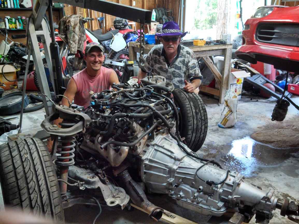 Next we removed the goodies from the camaro. It took 4 hours with a lot of help from one of my friends. The old guy in the picture is my dad and the young guy is my sons best friend who helped a lot. THANKS!!!! We watched this youtube video on my phone