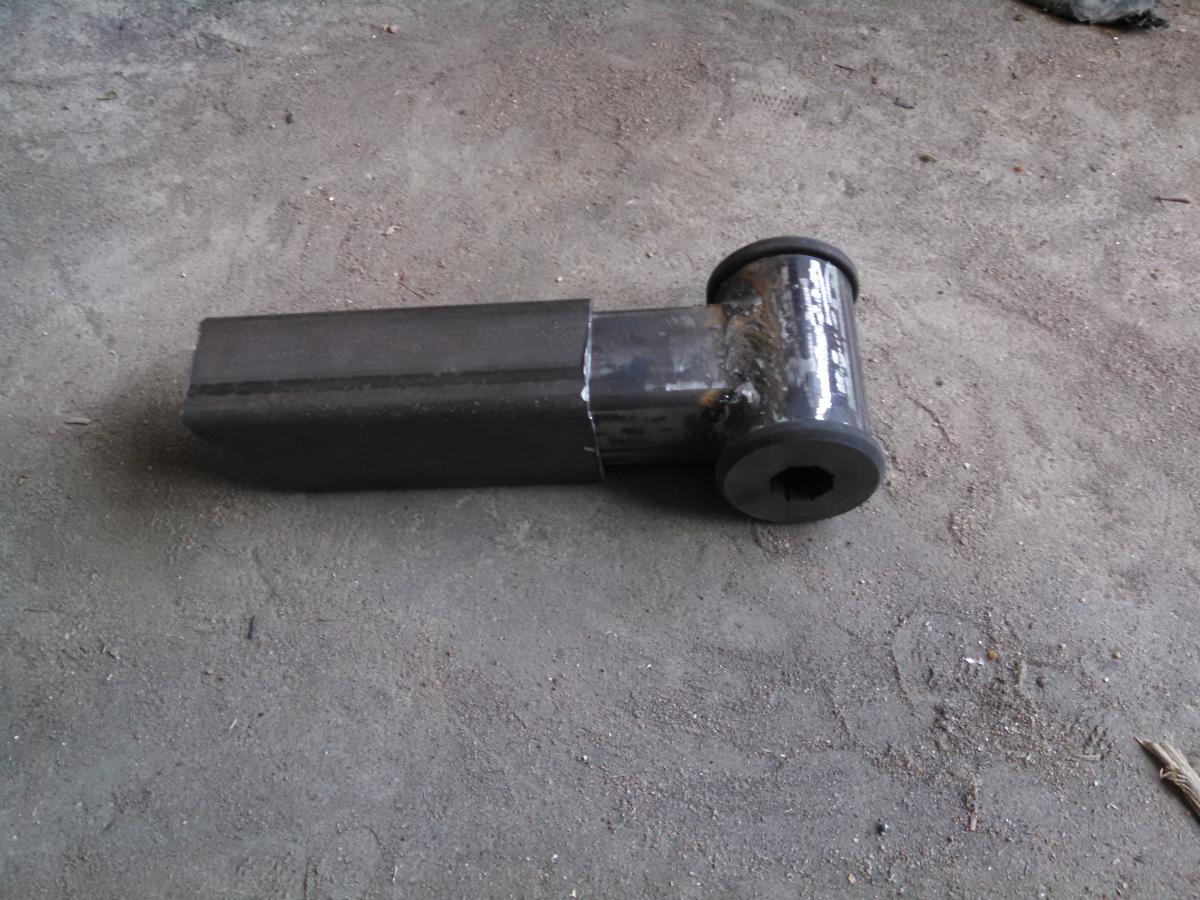 My first plan was to have a hole thru both pieces of square tubing and put a bolt thru it. That seemed a little wobbly so I trashed that idea and welded up the holes. That route probably ended up giving me a better product since it now has a giant spot weld where the holes were. LOL