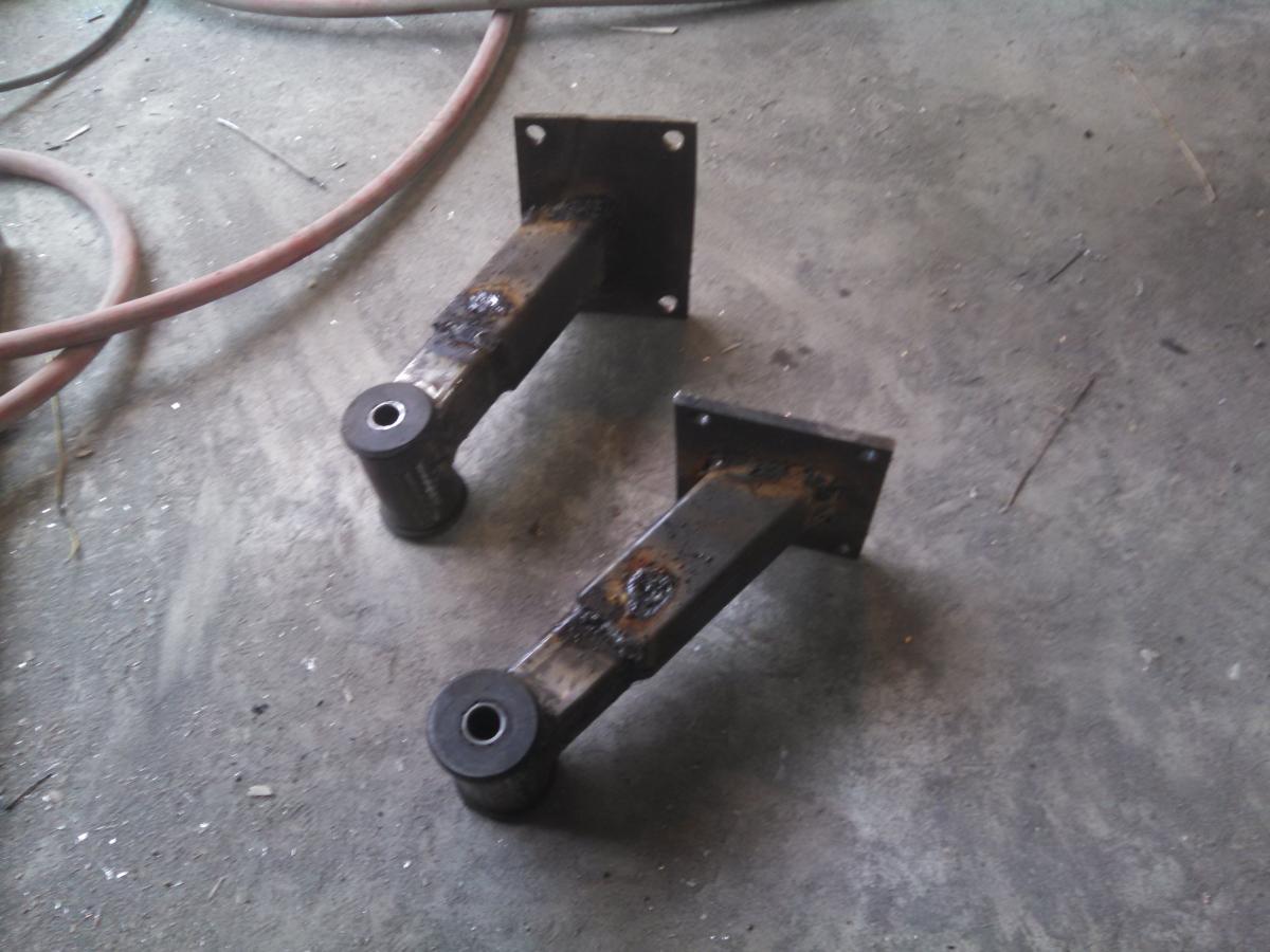 I made these brackets out of angle iron so I could lower my stabilizer bar and still use my stock camaro ls1 oil pan. The ears sticking out bolt to the frame and the apex is where the stabilizer bar mounts.