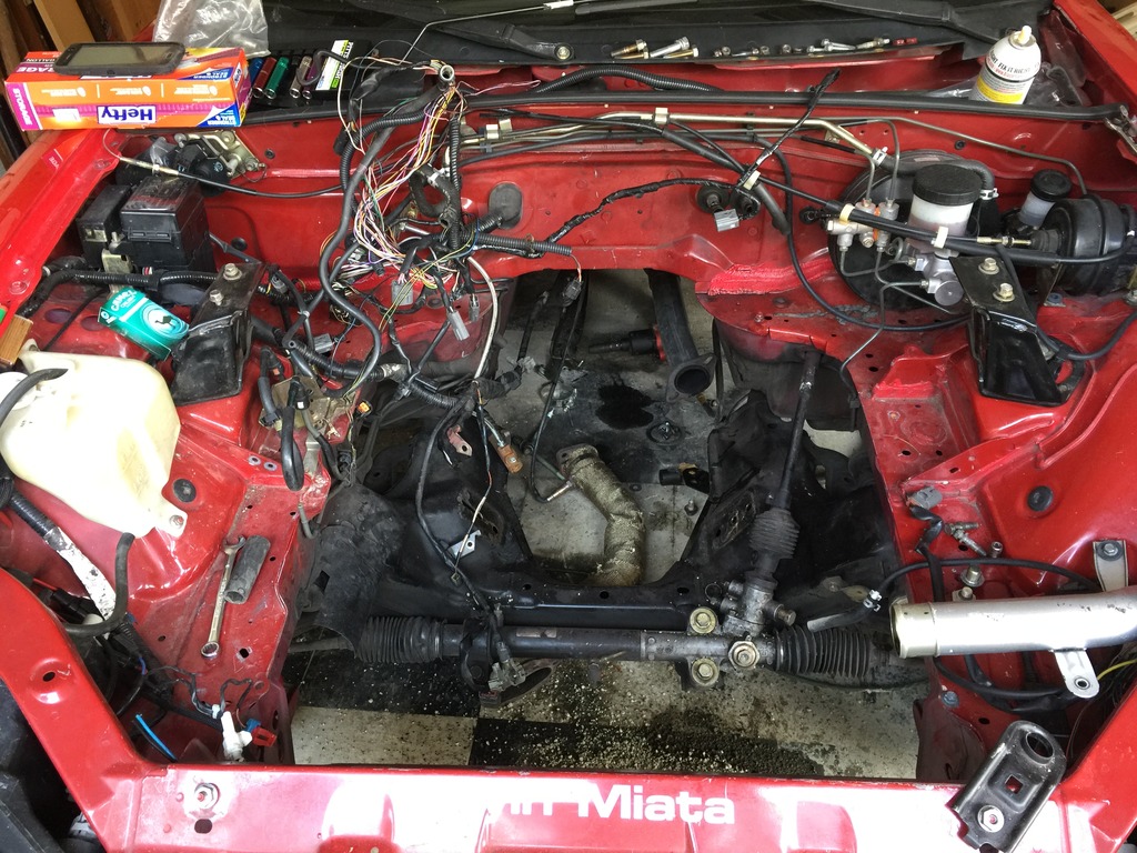 After watching Tom build his LS3 Miata, and blowing up the MSM engine I bought from him.. trying to chase down 300 hp, I decided it is time to stop with the 1.8's and go for a 5.7. So here we are!