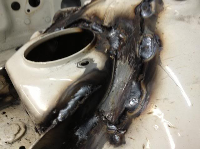 I'm starting up front and will move to inside the car later. So, remove the seam sealer and paint as best you can -- I used wire wheel on DeWalt hi-speed angle grinder and small screwdrivers to pick at it like a mad dentist going after tooth decay. Attachment 7858 Attachment 7859 Now, this is the 1st time I've EVER welded. I struggled with an old ill-fitting hood and learned that the scrap, 1/4" metal I played with 20 minutes is easier to spot weld than the Japanese sheet metal!! There are a few areas that I'll have to "fix" later. So, without further delay, I will display my poor performance! Attachment 7860 Attachment 7861 Attachment 7862 I will have an expert look these over and repair what is needed. But, I want this chassis as tight as I can get it. Plus, it's kinda fun knowing you're putting in some extra effort for, hopefully, better handling results. |