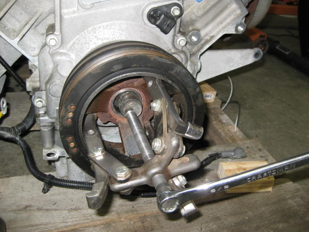 Today, I removed the front accy's for eBay listing. I'm going with most of the CTS-V components, so these GTO parts will go to new homes soon! Notice the use of a 25 cent piece between the pulley remover and the impact socket sitting on the nose of the crankshaft. I needed something to push against with the tool, got the pulley off easily, but destroyed the quarter! Attachment 7901 Attachment 7902 Attachment 7903 Also, I had the pleasure of 3 boxes of goodness from FM: radiator, front V8 sway bar, fan kit, short shifter,fuel kit, and the Targa V8 DVD for later!!! :) Attachment 7904 Attachment 7905 Will get back at it tomorrow AM and get the motor ready to put on the engine stand. Cheers. |