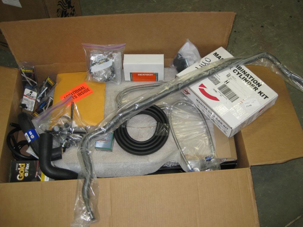 In the meantime, I've been doing more interweb research and making some key part acquisitions. I might as well post up some pics with brief commentary: Starting from the front of the car - From 3 vendors, I now have my missing Z06 intake components such as the Hitachi blade-style MAF, wiring harness adapter to tie it into my LS2 harness, and a black, smooth silicone intake adapter that will connect it to the throttle body. Attachment 7797 On the front drive accessories, I cobbled up my own CTS-V kit. Since my plans call for no P/S, I didn't want to do the whole GM 19155066 kit. I took the liberty this wknd, to paint the brackets and waterpump with hi-temp silver paint to help preserve the clean looks. After seeing how the bare aluminum brackets and accy's looked on my 7 yr-old LS2 donor, I want to improve it in the looks department. Individual items are either from Delco on Amazon, GM dealer on the web, or eBay vendors. The A/C cond and the alternator were listed as "rebuilt" by reputable eBay vendors, but BOTH arrived as NEW Denso items with Delco/ GM part numbers and Delco boxes. That equaled some big savings! I was going to do a 160F thermostat that I received a few wks ago, but further research indicates that the 180F is what I really need so the LS's engine oil will get hot enough to burn off condensation. New 180F t-stat on the way - new 160F to go on eBay. Attachment 7798 Attachment 7799 New Taylor wires as one of the original wires broke upon removal - (damn thing was fused on the plug!) New NGK plugs as well. Not seen are my eBay plug wire insulators/boots. They're a blue weave that will be a subtle addition under the hood. Attachment 7800 And wrapped up in the wires, will be these FM headers. From what I can tell, the advantage over the Sandersons will be the pipe connections further down in the engine bay. Attachment 7801 Motor mount heat shields, anyone? Having never seen a pic of these stainless steel Flyin Miata ones before, I thought I'd post 'em up: Attachment 7802 Not new, but I cleaned up the GTO LS2 starter and heatshield. The alum was a little chalky and some surface rust was on the black painted metal. She now has a dark bronze tan to help protect her from the future elements! Attachment 7803 Further back is the new Monster Stage 1 clutch, PP, and lighter-weight steel flywheel at 18lbs. Got this kit from Maryland Speed with their new GM bolts, throwout unit, and pilot bearing. Attachment 7804 Attachment 7805 For my cut-up firewall, I'll need these FM weld-in plates to stiffen up the corners. They're heavy gauge - but that's all I can tell you. Paint can is there to illustrate size of the pieces. Attachment 7806 From the reading I've done, it sounds like this Motorcraft reverse switch for the T56 will save me a headache as it has a 90 degree bend for better tunnel clearances. Amazon for the win again! Attachment 7807 And finally -- brakes, suspension, tires & wheels. I originally thought I'd do this later - like year or 2 later. But the devil kept pushing me along with a demand for more Mission Creep... So, the FM VMaxx Classic with NB Miata upgrade and the FM V8 replacement springs in case it sits too low on the originally-supplied front springs. (I do want this car to keep a relatively lower stance - no original height or taller is acceptable.) Attachment 7808 Good-Win Racing supplied the rest: Wilwood BBK - I wimped out and settled on the standard kit with Brian's custom st/steel ft hoses so I won't have to utilize excess Wilwood plumbing adapters. Rotors will be smooth - calipers will be black - no brake bling for me - only guys who have 15" carbon fiber rotors and 6 or 8 piston calipers have the authority to draw attn to their brake set ups! :) Attachment 7809 And the tire/ wheel selection -- my preference is for fat tires (yeah, I'm going with no power steering, wish me luck!). These 225/45/15 Toyo Proxes and 15x8 machined-finish Konig Flat Outs will also require some fender lip modifcations. I never wanted to commit adultery to this clean Miata body, but those feelings went out the window after all the stitch welding and cutting that's been going on in recent months! Attachment 7810 Nikki shared her approval after the FedEx guy left 'em on the porch. She insisted that I take a peek before carrying them to the garage. Attachment 7811 Keep you posted as the story continues. BTW, I did take the Ford 8.8 Diff and 3.31:1 ring & pinion to Fastlane Motorsports in Benson, NC. These guys are late-model Mustang experts! They're going to update the diff with Ford Racing bearings, seals, limited slip, etc so she'll be ready to bolt in -- when that day comes. ...Just need an oilpan so the build can resume!!!!! |