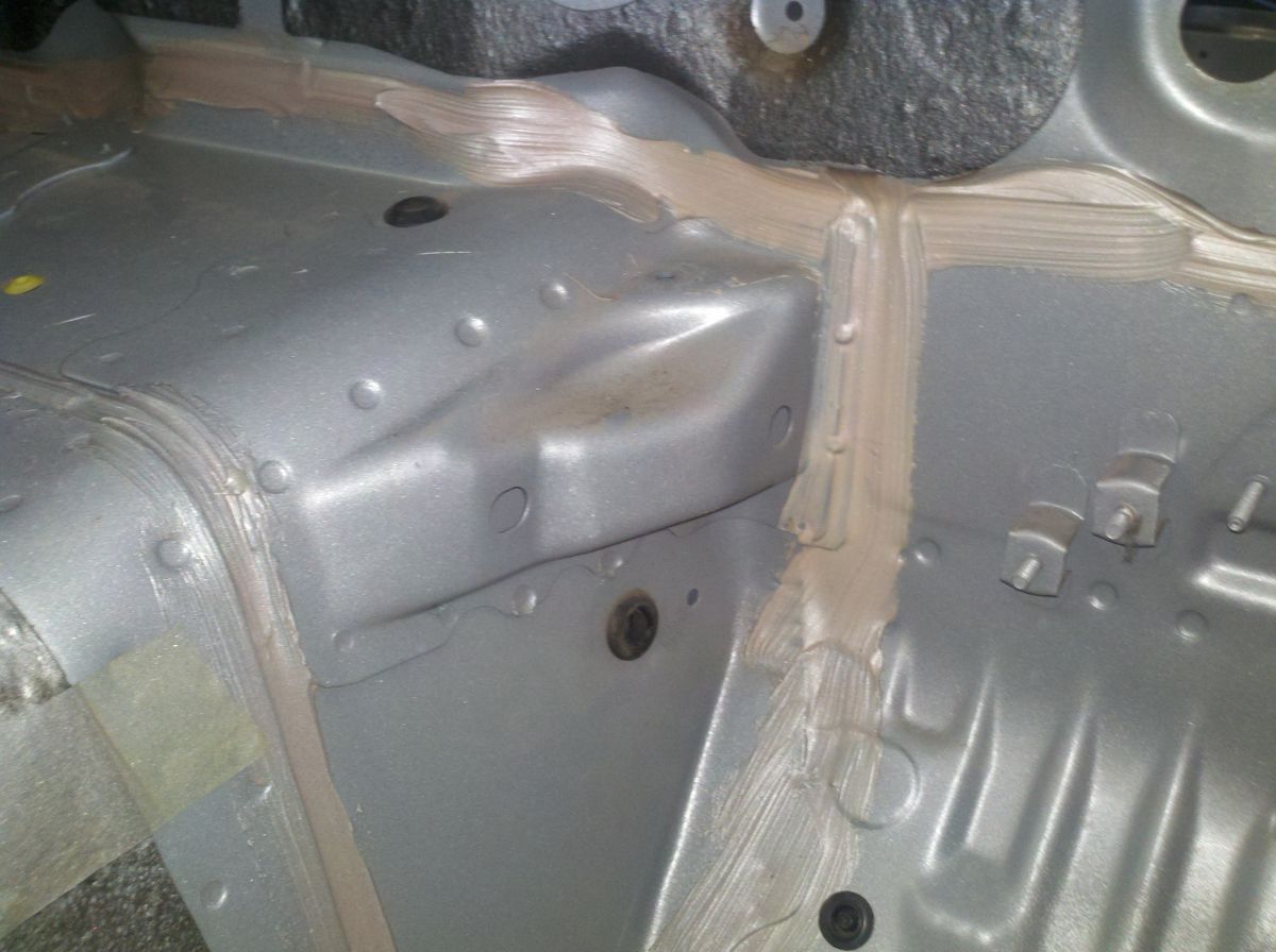 I cleaned the rear wheel wells, below the hole for the fuel tank, and everything pretty much rear of the doors. Then I went to work with a 2" brush and a a quart of Tractor Supply's best gloss black paint! I think it is turning out just like I wanted it to. I originally wasn't sure if this paint would cover 20 yr-old random, Mazda undercoating and such, but it did great. Took the better part of 2 afternoons to get the back half done.