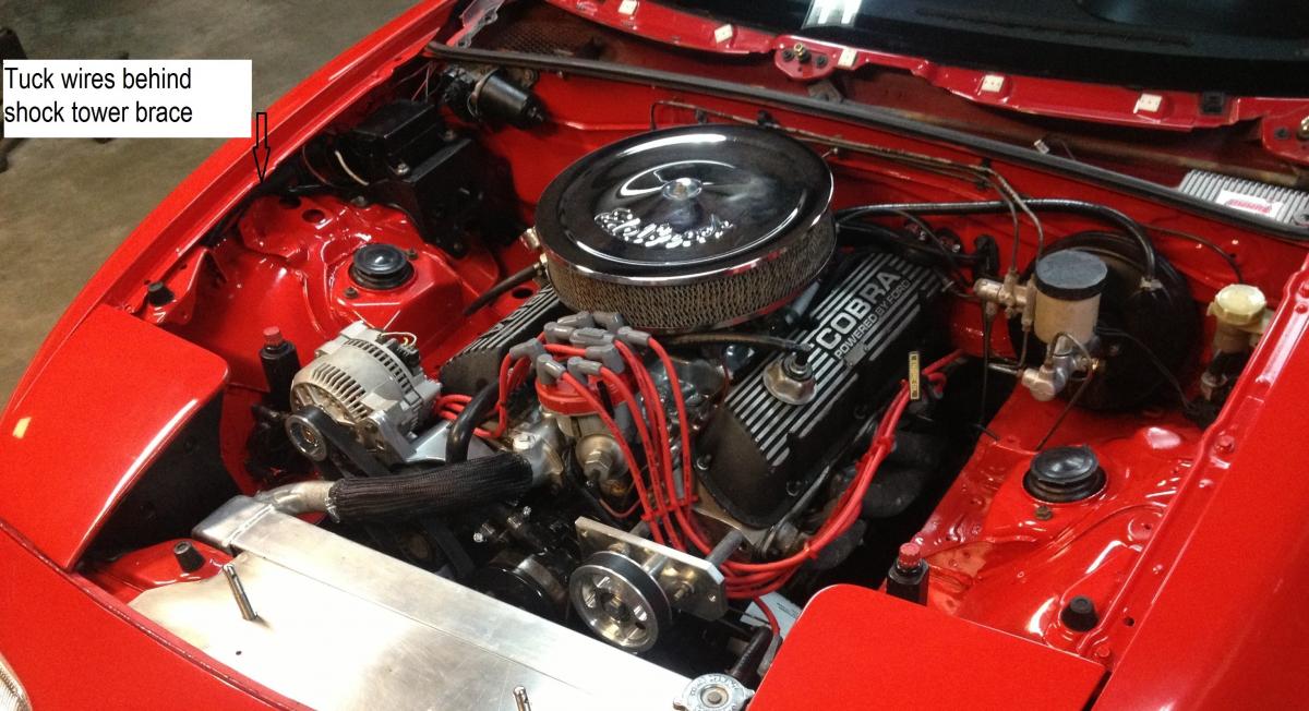 I know, no wire tuck. But consider the note on the image below. You could go a couple different ways since the fender is off. The option I chose which is to route the headlight and fan wires behind the shock tower brace, or drill a hole behind the fuse block and route just outside the inner fender.