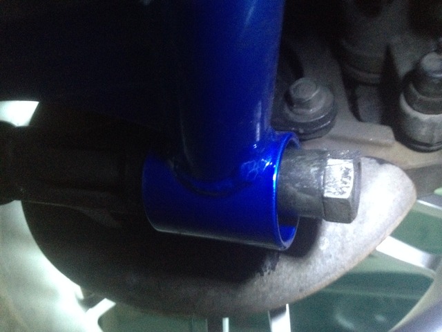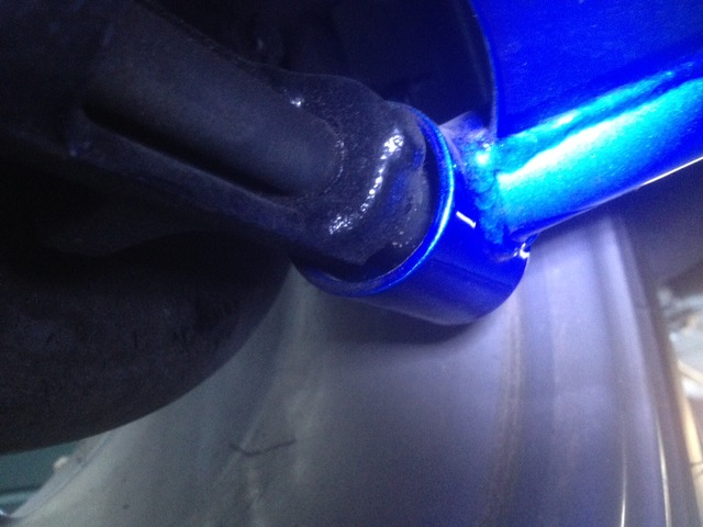 My big question is... DID I leave off necessary washers that would secure on both outer ends of this long bolt that would keep said bushings from walking out?? That's what I'm thinking. I'll have to look under my stock '91 BRG to see what's different there. See how the rear LH lower bushing in above pic is trying to walk its @ss out? A washer would stop that, I would think.
