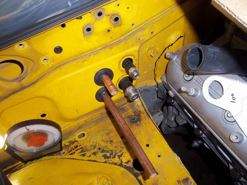 Picked up a couple of heater hoses at Autozone.. perfect. One 5/8", the other 3/4". Both about 24"+ long with a simple 90 at one end. The firewall end is not done yet, hope to finish it up tomorrow night and pressure test it. Will get some measurements of the final pieces, etc. Need to figure out a good way to support the lines inside the cabin, not sure on that yet.