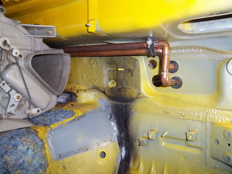 I wonder how much heat will be thrown off the copper tubing running from the core to the holes in the firewall. Perhaps some insulation on the tubes would keep cabin and foot well temperatures down.