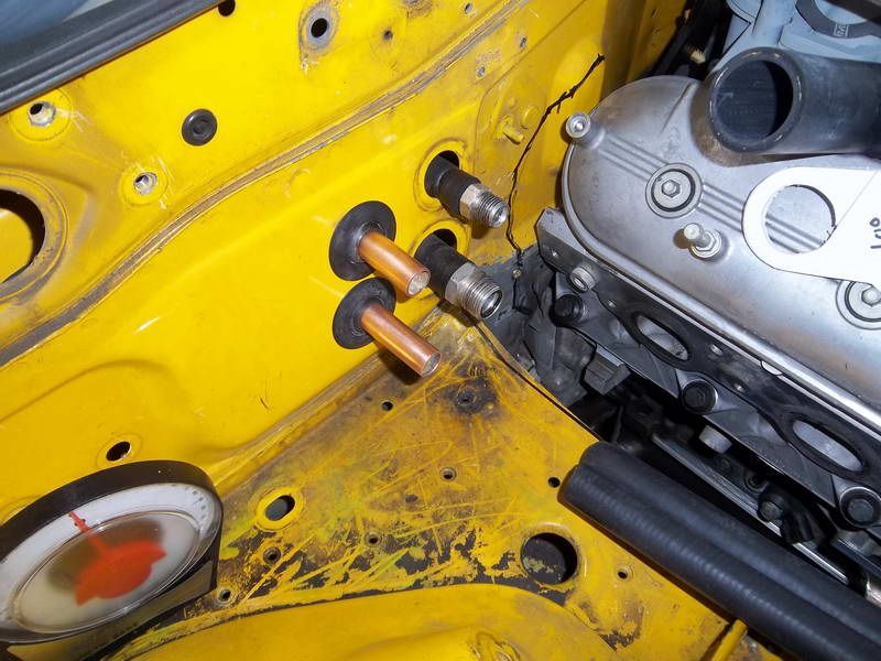 Heater Core Inlet/Outlet Relocation - Finished! Welded a stud neat the firewall for a support.