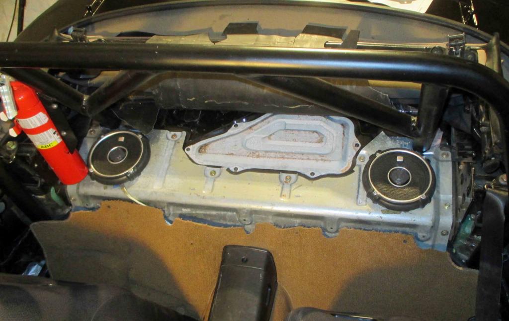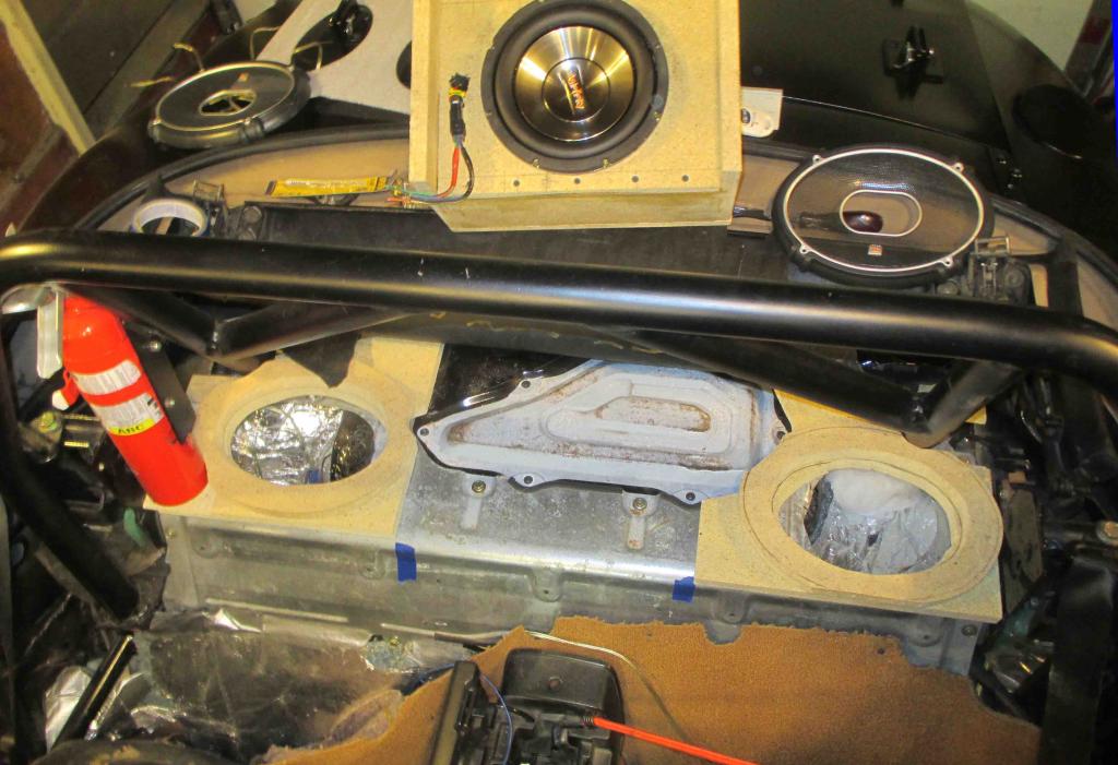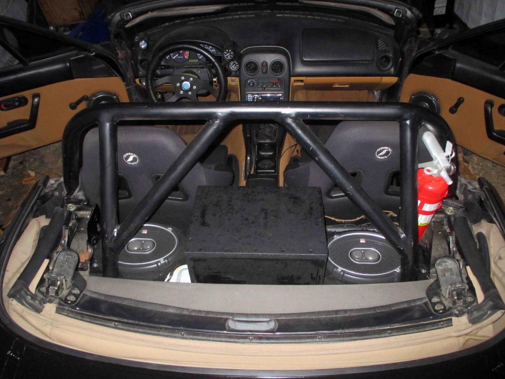 What's holding me back is I already have full range speakers mounted in the tin pretty much like Tbone did his by blocking off the passage to the trunk at the roll bar and making a little cab out of the space. With no way to put speakers in the seats that is pretty much the only place to put rear speakers so I'm sort of stuck between a rock and a hard place. I may do a little down firing cab for the center or pull the whole mess out and somehow incorporate the full range speakers on the sides with a sub in the center of the same panel / box. Just don't know what the best approach is. PS for me a foot well sub is out of the question because I spend plenty of miles in the passenger seat! |