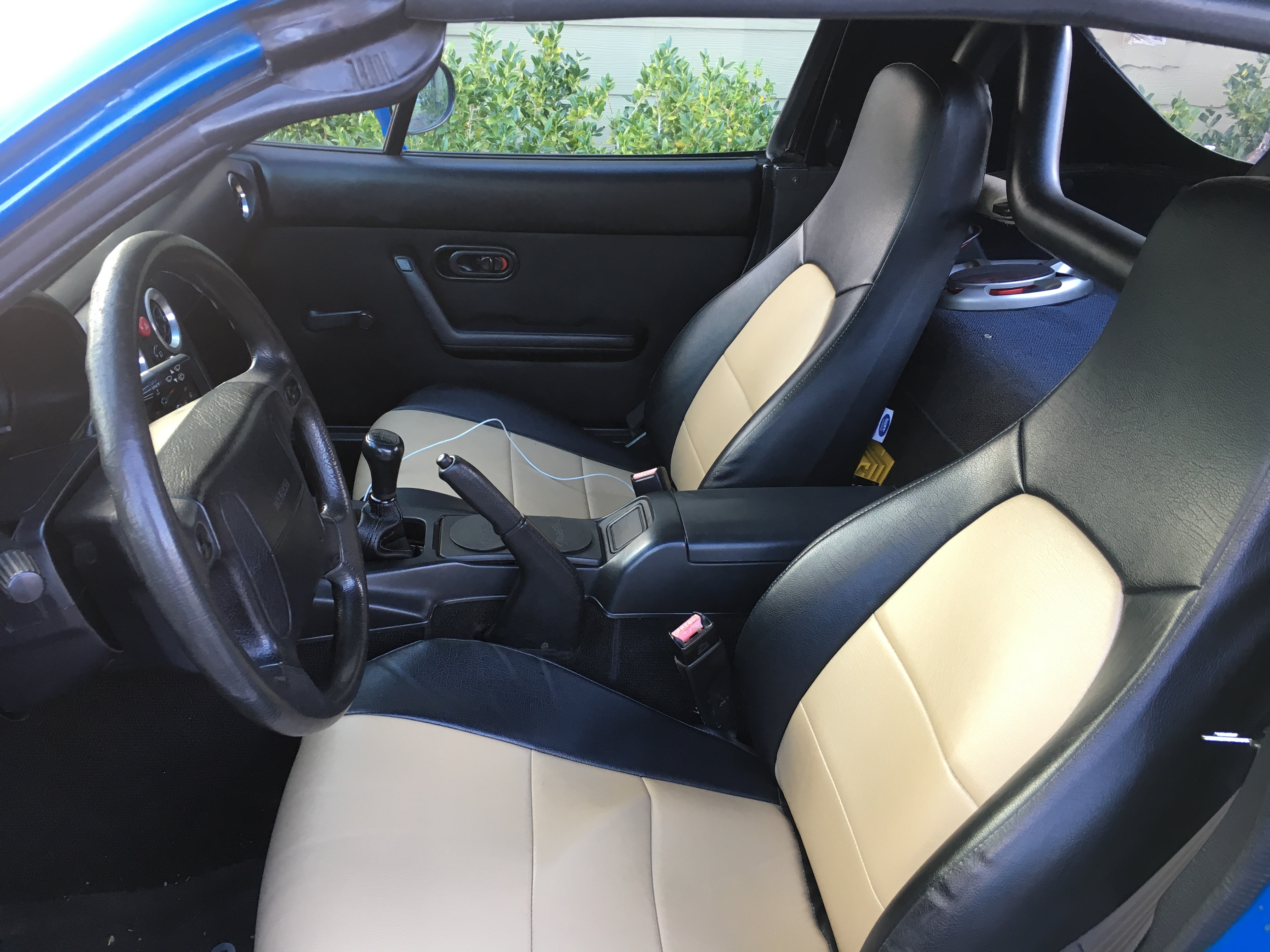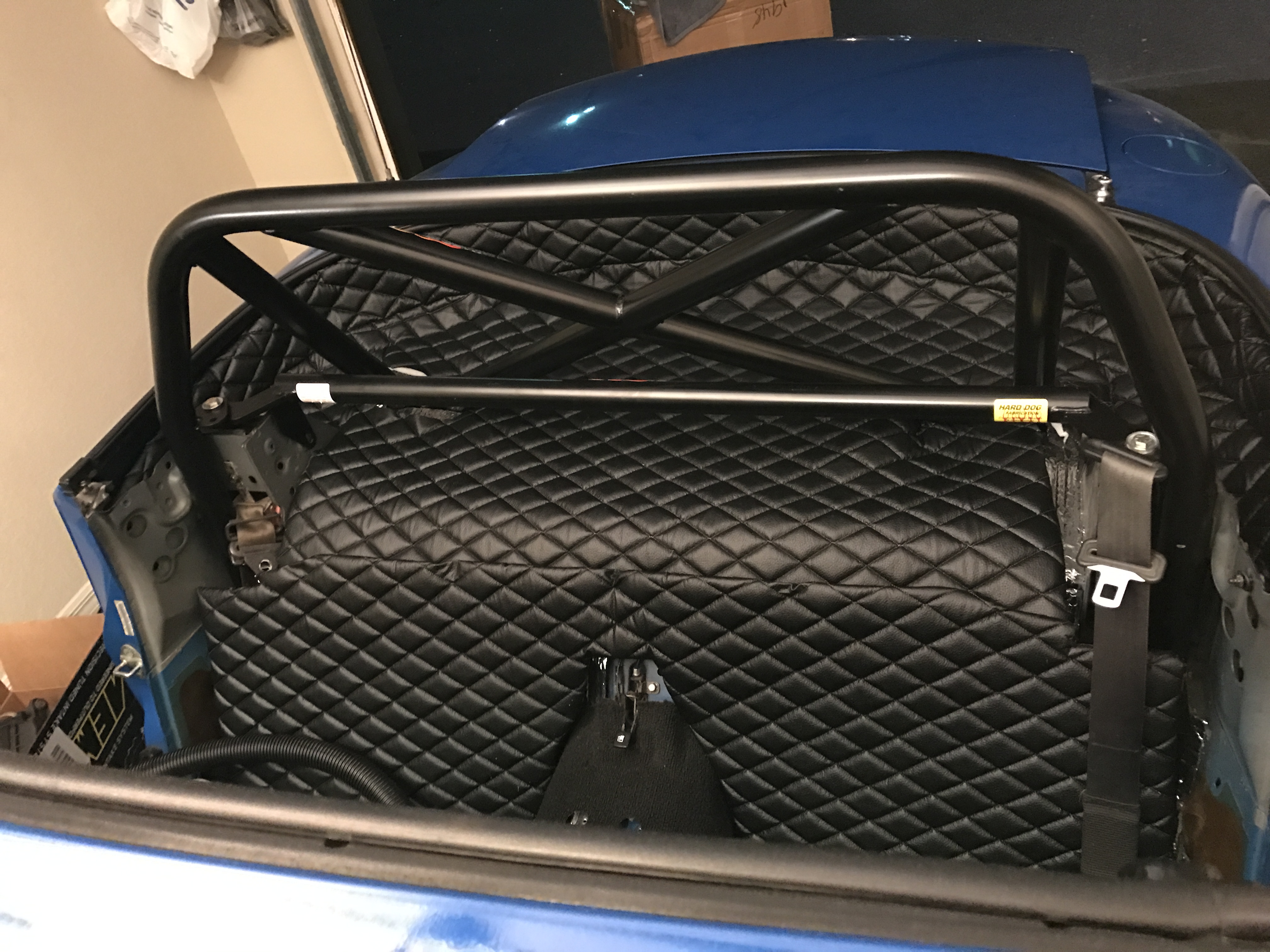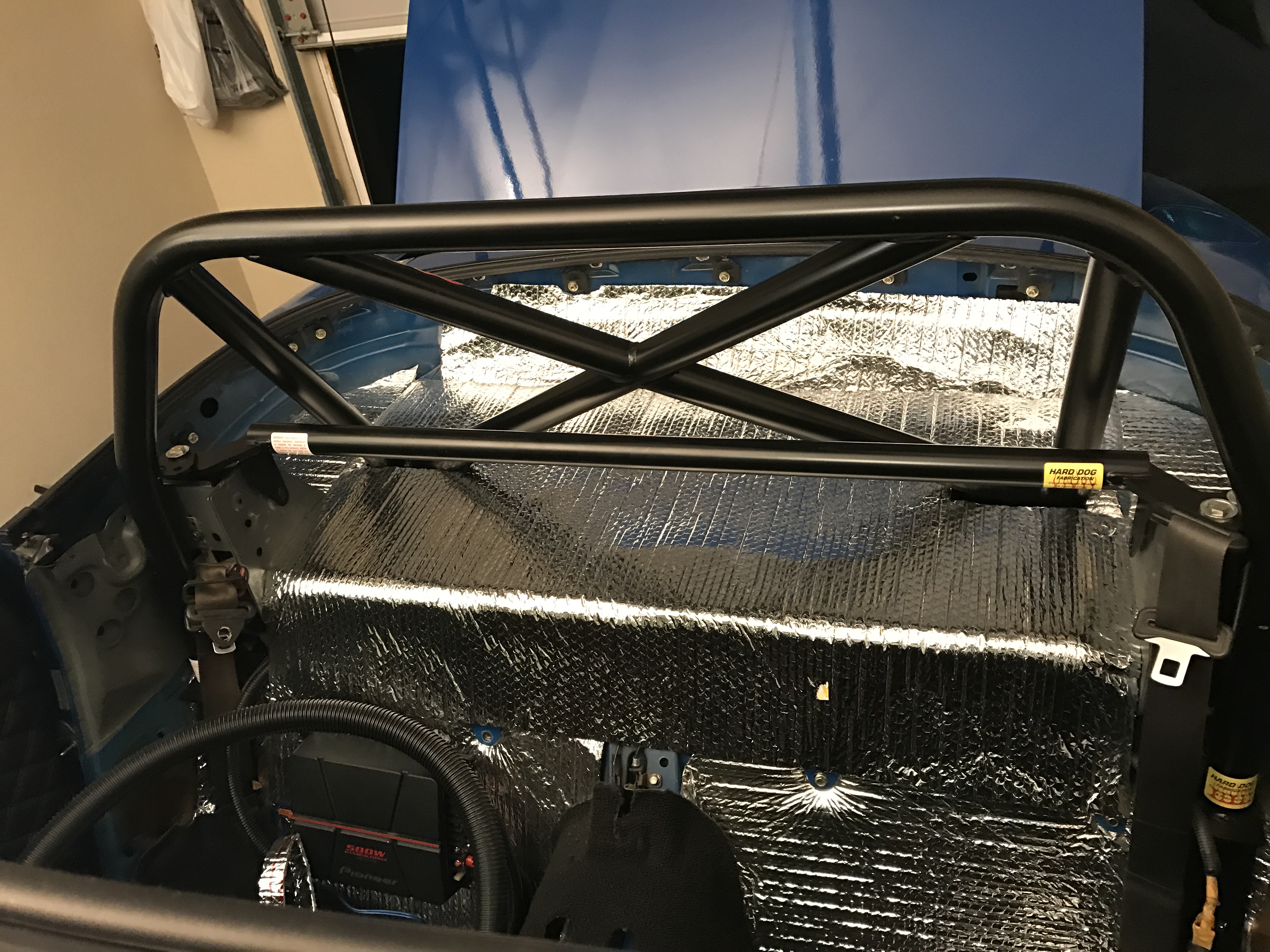 Thought I'd share with you guys some interior that I've been working on in my spare time. I pulled up the carpet and removed all the old insulation and laid down some Reflectix before putting down the quilted leather (synthetic). I installed the Hurst shifter, the Track Dog roll bar, the Boss Frog door bars, and the Track dog Ultra shield seats.