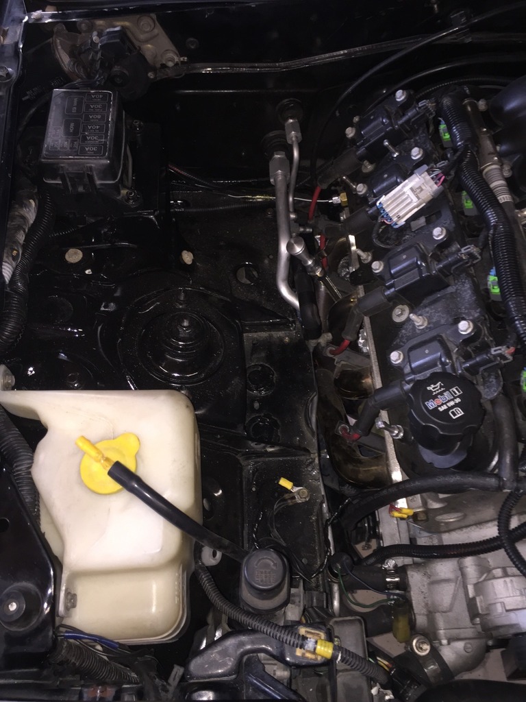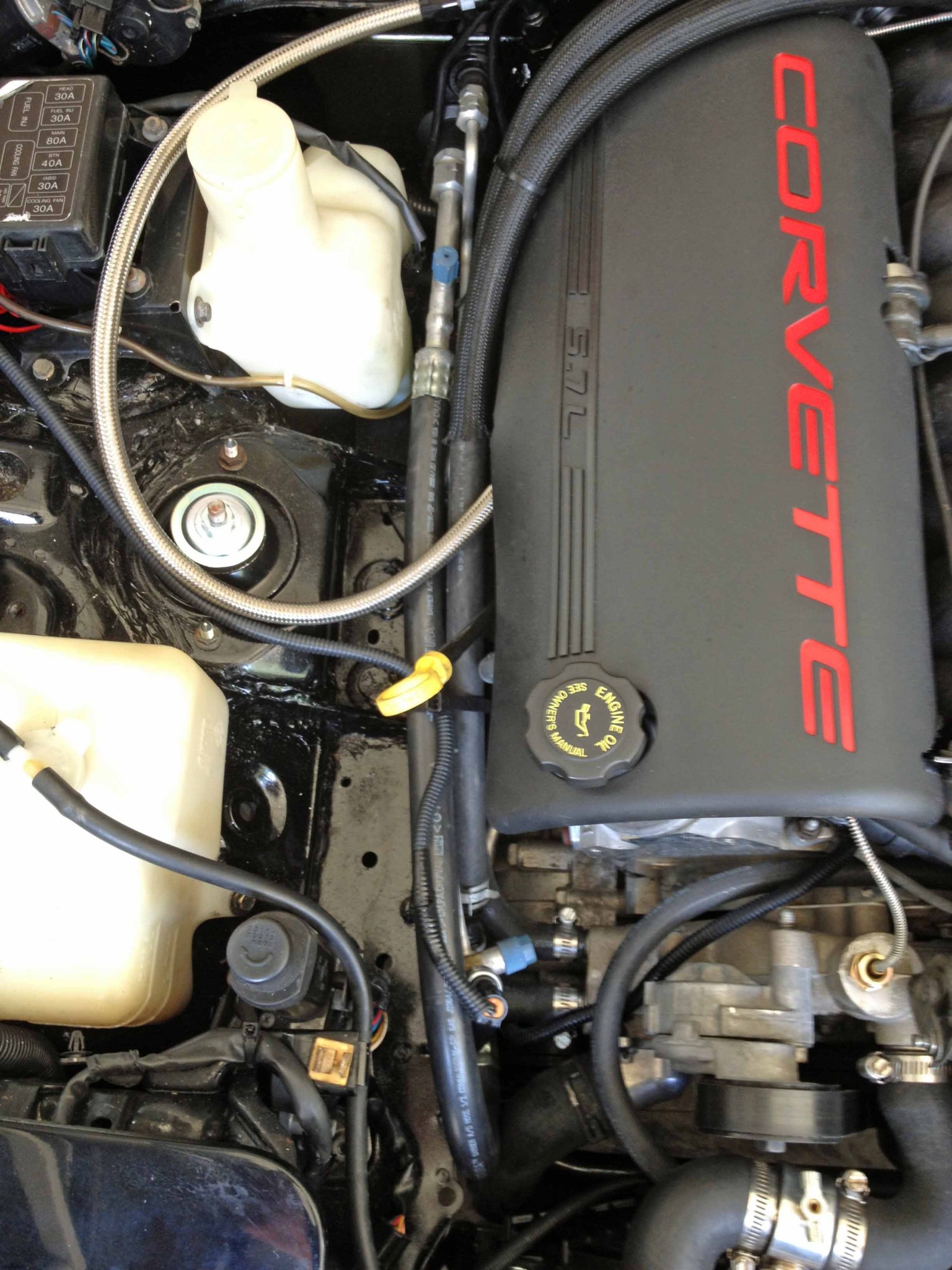 Used factory Miata lines and cleaned up engine bay. Had to bend them around headers a bit.