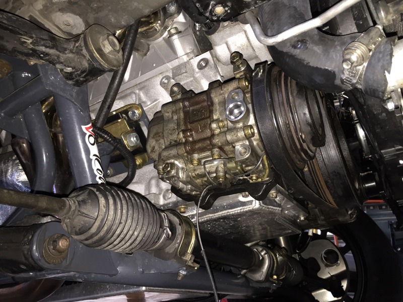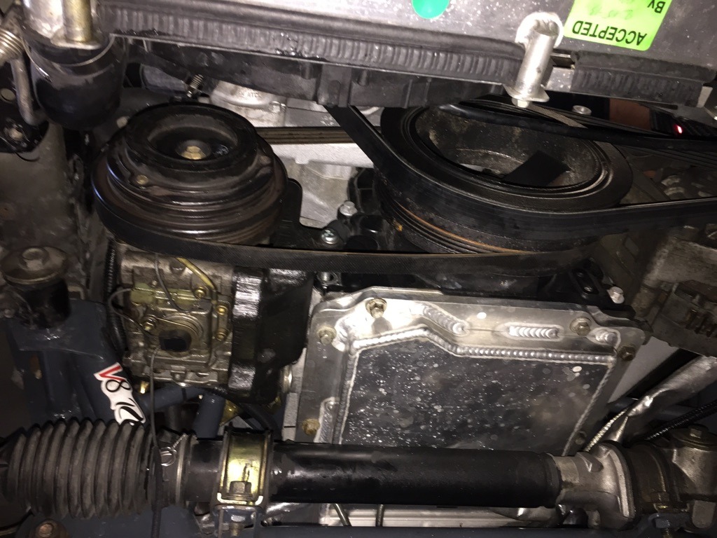 I was surprised to see that the GTO crank pulley uses the same 4 rib pulley that the Miata compressor uses. I tried to come up with a way to get it to work, but since it is on the opposite side of the motor, fittings were not working well. Gonna hook up a GTO compressor and find a shop that can finalize the connections for me.