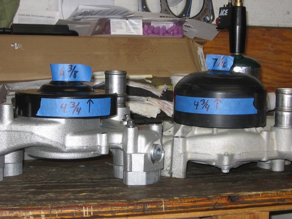 But I did use a 'vette water pump, and some 3/4" spacers. You can a little bit of room, and the pulleys just barely line up. We'll see how that works at 7,000 rpm's.