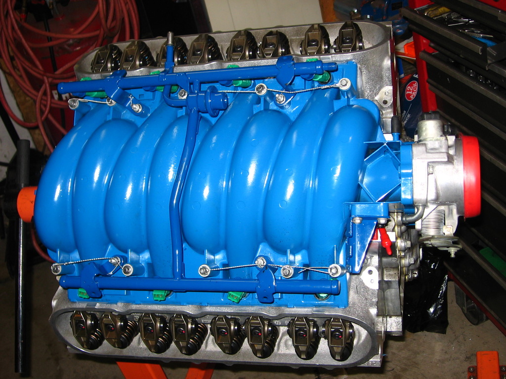 The intake is a stock LS6 part. I cleaned up the runners a little here and ther with a sanding roll. but otherwise left it alone.