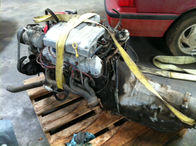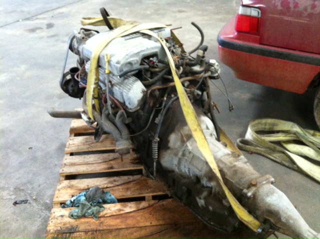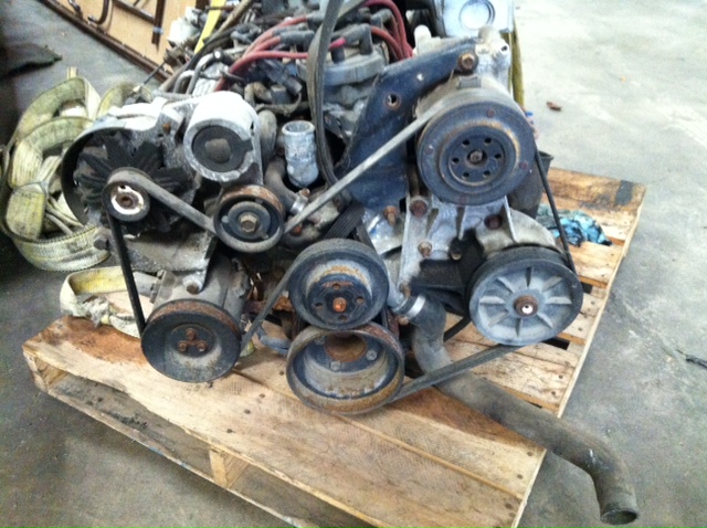 I have a 5.0 ford motor with all the belt driven accessories, transmission (AOE I think), starter, engine side harness, PCM... just about everything. Does not have a throttle body or MAF, nor the wiring between PCM and motor. Finding the wiring in a yard was easy for me, and was my next step before the project ended. Now it should be used and I can use the cash.