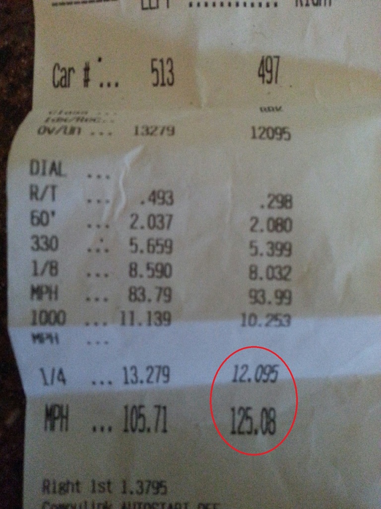 The online calculator predicted 10.5 at 125. But the one I used didn't take anything but weight and HP into account. It'd take a lot more traction and a much better driver to get into the 10's. I'll be happy to see mid 11's and think that's a reasonable goal. It's a two hour drive though so if I get down there once more in the car this year I'll be surprised. We are planning to go back in August to run the Jeeps. ...just for laughs (built rock crawlers).