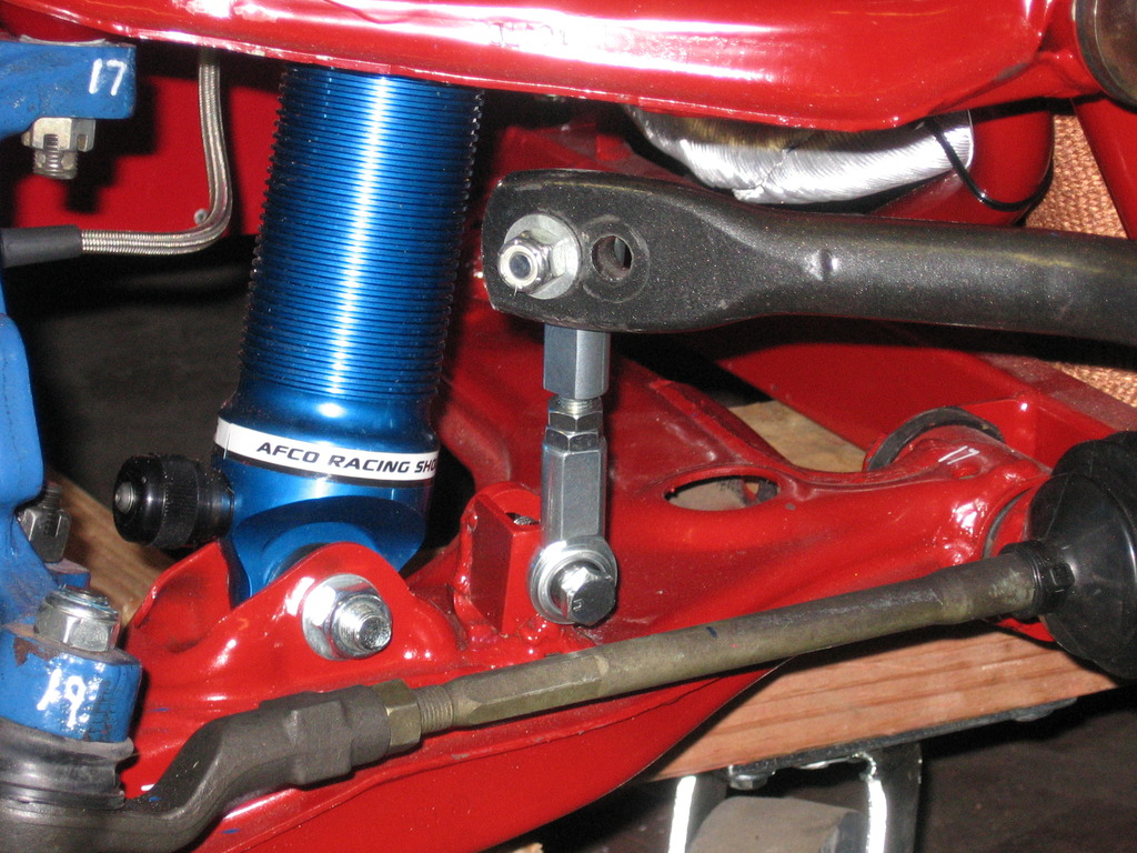The reason the lower mount (on the arm) looks differant is because I had to move the sway bar forward to clear the crank pulley. So I moved the sway bar mount forward to match. The tie rod has about 1/4" of clearance at full lock.