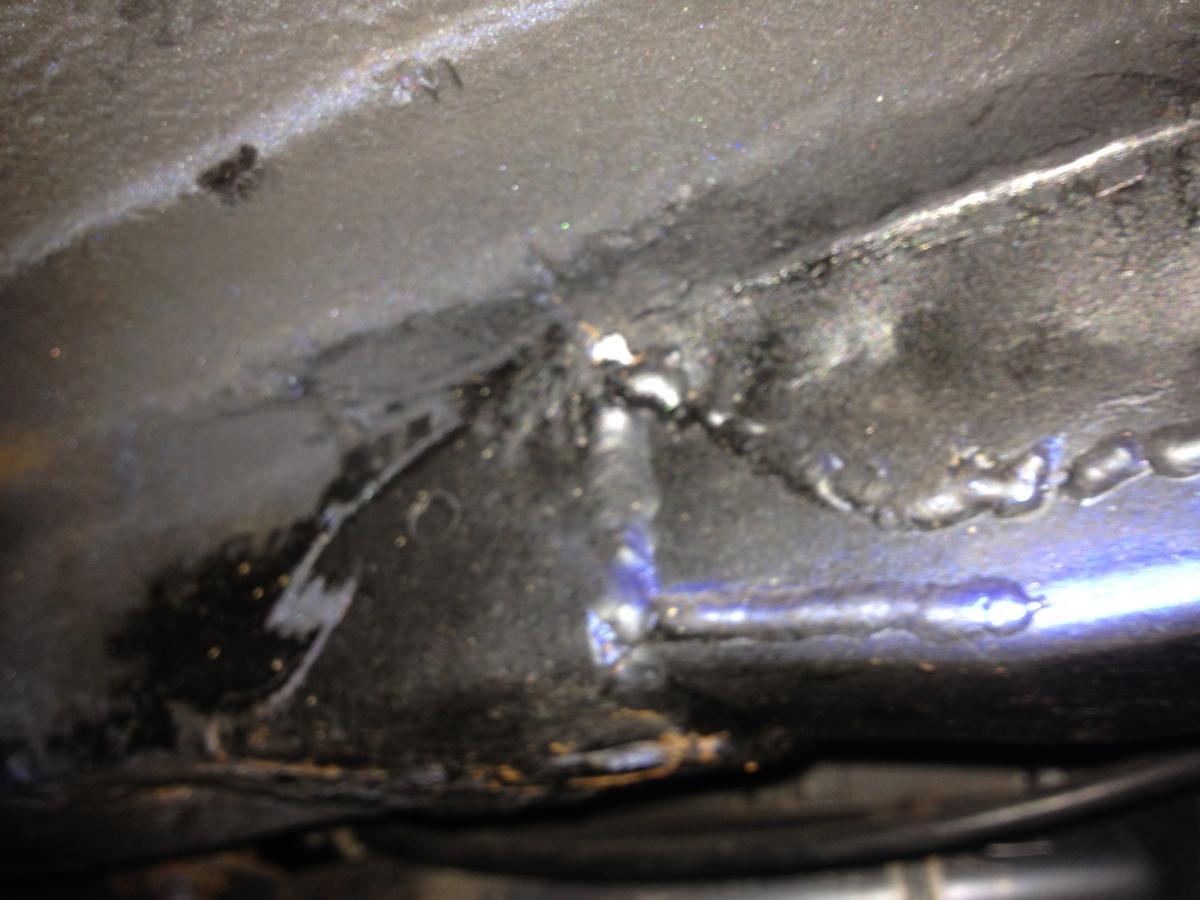 Though I did plenty of upside down work under the car where I welded the 2x2 rails was welded from inside the car on/ through the floor not underneath.