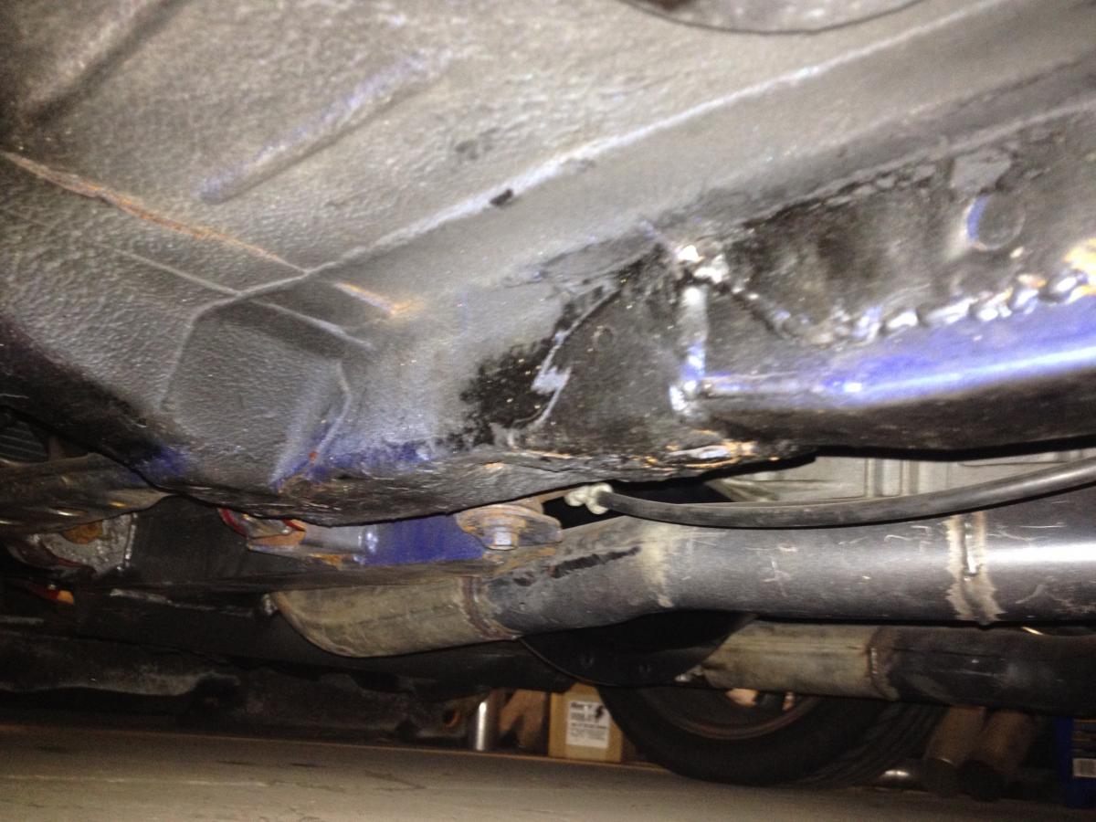 I saw where somebody removed their interior, cut the floor pan above the rails, beat the bent rails back into shape from the inside, & filled the rails with some 2" (I think) square 1/4" wall tube that was welded along the area. This is how I would go about repairing it if mine were badly damaged. It would also provide a much more stable mounting location for the transmission crossmember. You would also never have to worry about the rails bending again, & you would have a great location to jack the car up with.