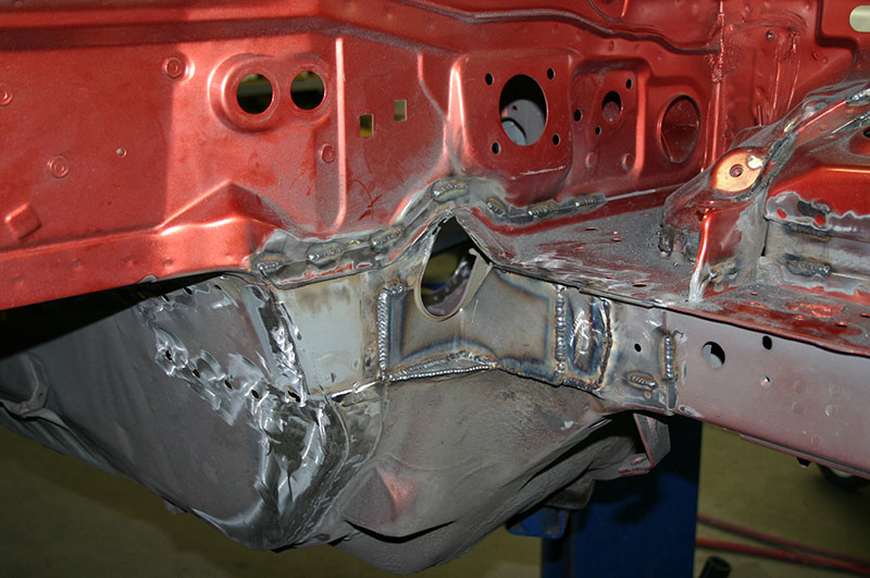 This is a good subject to develop. For most V8 swaps like has been mentioned, we take more out at the firewall/frame rail joining than some realize, I'm sure there is strength lost there. It'd be interesting to see what can be done to put it back. I really like the welded in strengthening you guys did under the fender.