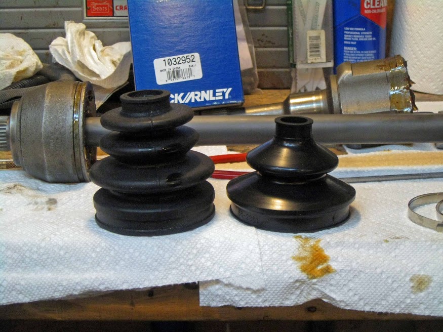 BY THE WAY - speaking of these axles..... did anyone else find it a HUGE PAIN IN THE A$S to get the outer CVs off these axles? I found the inside edge of the CV are just not made to make that retainer clip compress and squeeze back in... on both I banged for hours until the retainer clip finally shattered and the CV came off...