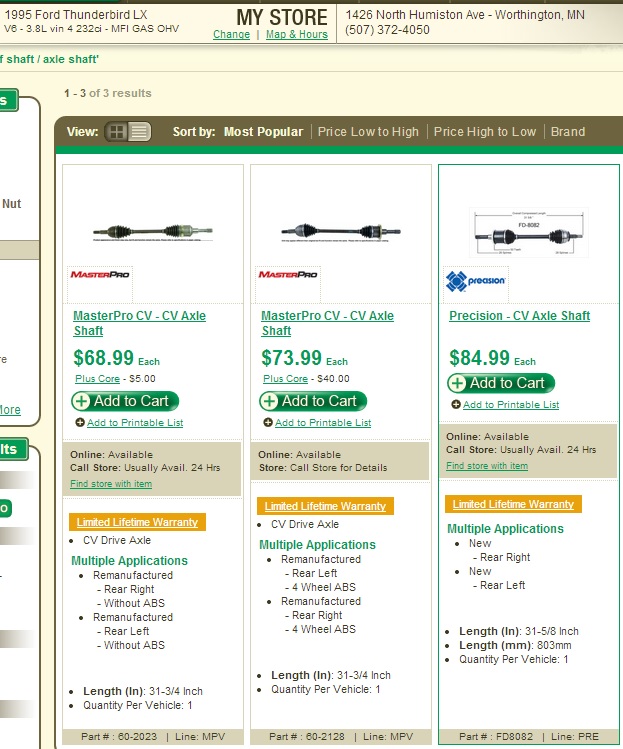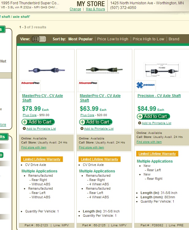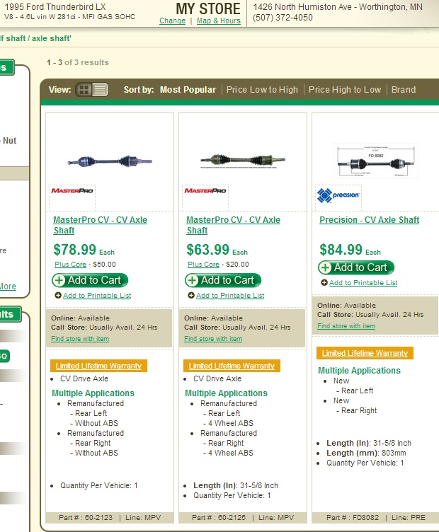 Just for ***** and giggles I decided to look up axles at advance auto parts.com