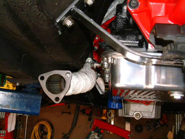 The extra tunnel modifications would mostly be on the passenger's side, from what we've seen mocking this up. I think the biggest problem is the fact that the oil pan pushes the exhaust pipes out from the transmission tunnel to beneath the car. It has a big effect on ground clearance. Note the relative locations of the frame rail and the exhaust.