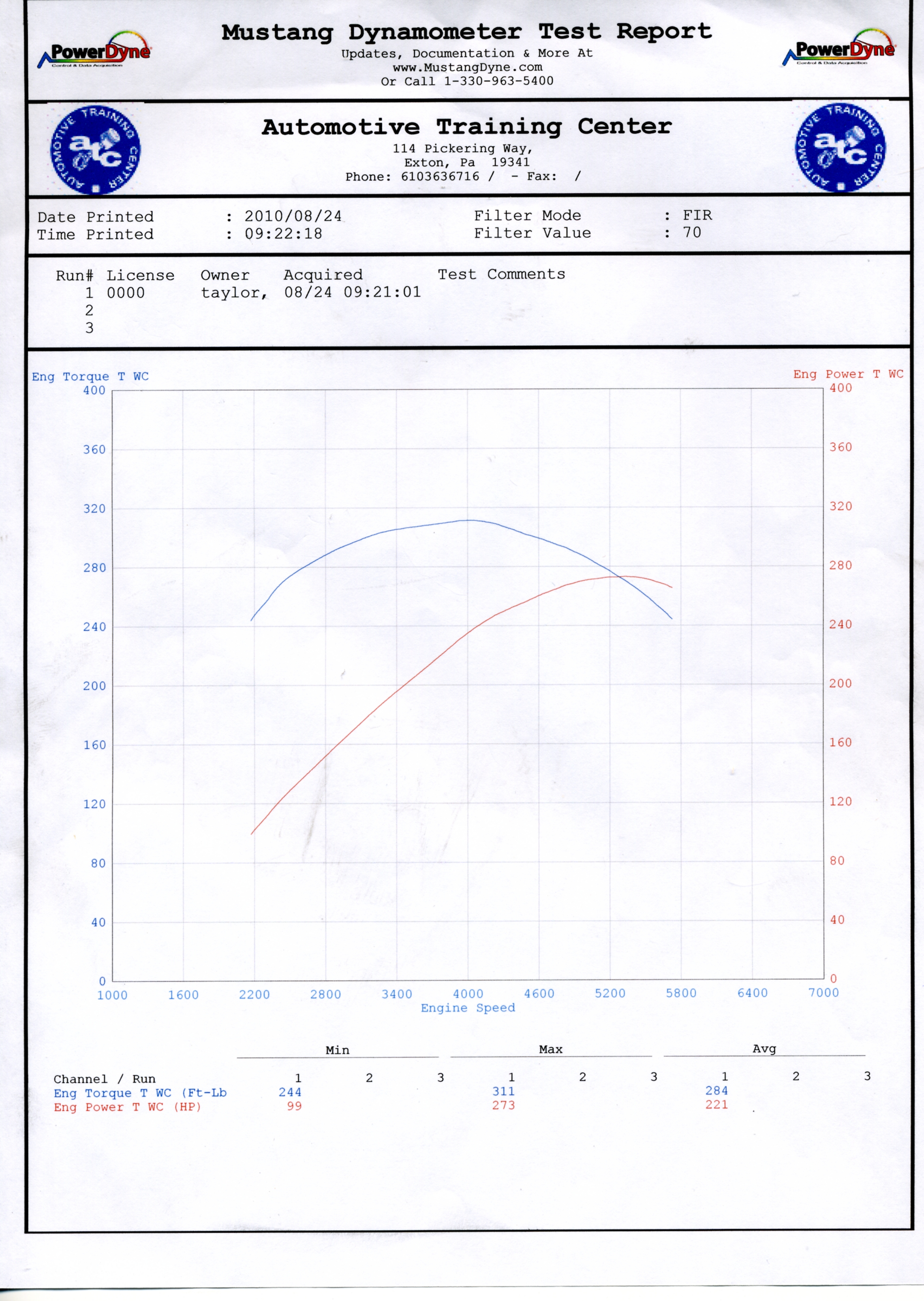 About a month ago my father took the car to his school on "Dyno Day". Here's the results: