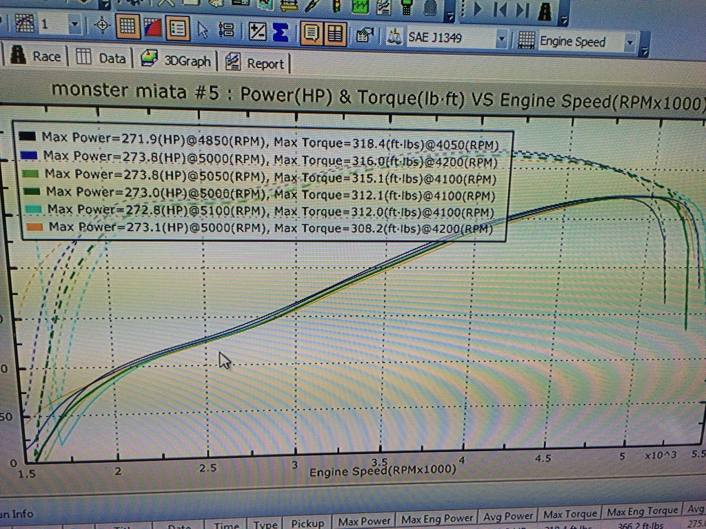 Finally done. With good fuel flow, my numbers dropped a bit because it was not running so lean. We went with a good safe tune at 273.8HP and 315.1LBS TQ. Not too shabby for a 2500 Lbs car. With good tune, new tires, and larger brakes, she is ready to get back to the track.