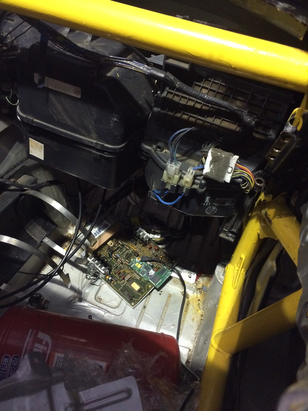 Ran into a fuel problem later in the day. My pre-detonation came back. Maybe it was not high intake temps after all. When things got hot, they saw a spike in my air/fuel ratio. It went super lean. Watching my fuel pressure guage, they saw it drop significantly. It's either fuel getting hot and vaporizing, or something is causing fuel pump to turn off. We are starting with running a larger guage wire direct from ford ECU to Miata fuel pump in case resistance is increasing and causing an issue. To be continued tomorrow. |