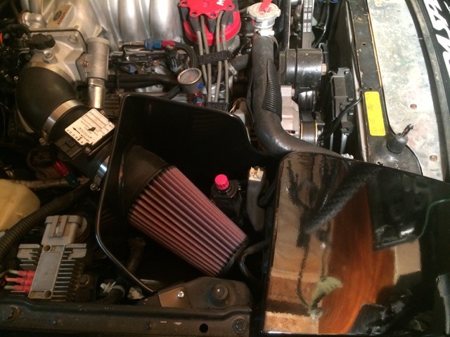 I have been studying the box you fabricated around your intake. The idea of high intake temps was discussed, and I noticed your filter is shoved closer in to the headlight. I am using a shorter pipe and a square filter. I think I will find a decent cone filter to move up into the unused space and lengthen my intake tube. Then I will make a box to protect it from the engine bay hot air. I want to do this before I hit the dyno.