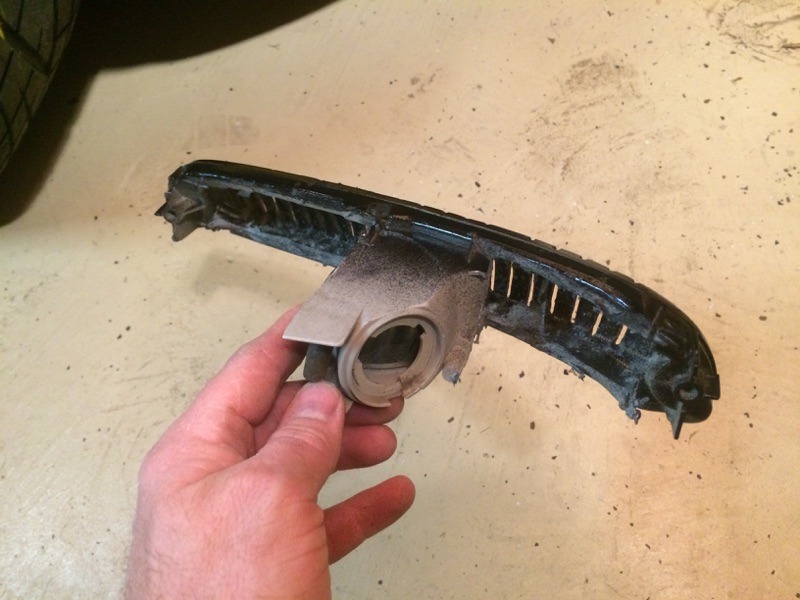 I also took an old signal light and did some backyard modification. Cut out the back, but left room for the bulb to still connect. Then I sliced thin lines in the lens to allow air to pass through. Thin coat of black paint to smoke it out.
