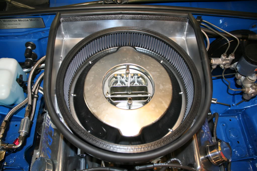 LEEBO, has a nice fresh air induction system, but it's easier to do because of the carburetor. Pro-M makes a similar single plane EFI intake with multi-port injectors that might be the alternative answer to Ford's EFI intake and the large upper intake. Almost all Ford sensors can be retained. The shorter runners would also raise the horsepower band to upper RPM but in a light car such as the Miata, you may not notice the lost in low end torque?!?!