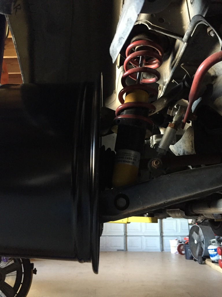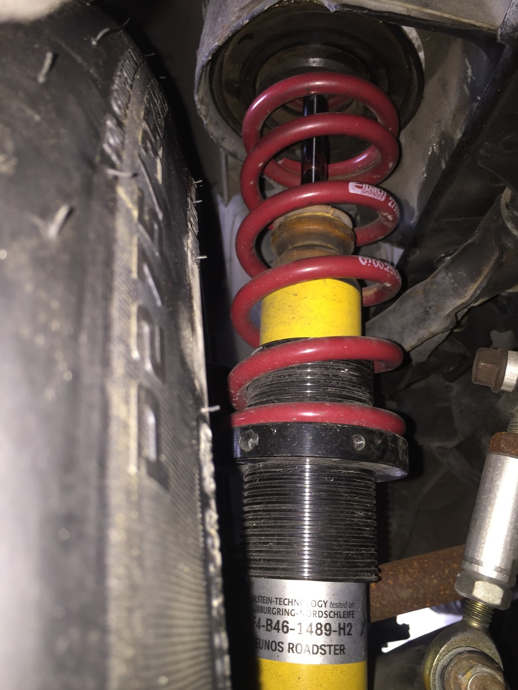 Got the fronts mounted up. With 60mm springs at 4.25" ride height, they need a 10mm spacer to clear the springs on an NB.